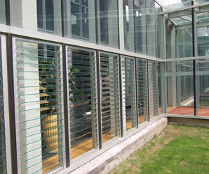 玻璃百叶通透性最好,叶片选用透明或者磨砂等不同的材料,可以取得不同的视觉效果;易安装、易清洗、每片百叶均能拆卸,可在拆卸后进行清洗,避免高空作业的危险;